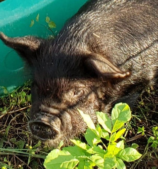 However in the future we will be selling their piglets. Some will be sold for registered breed pets and some to be raised for meat. The money will go back to the farm to buy feed, vet care and provide even better shelters and more fencing.